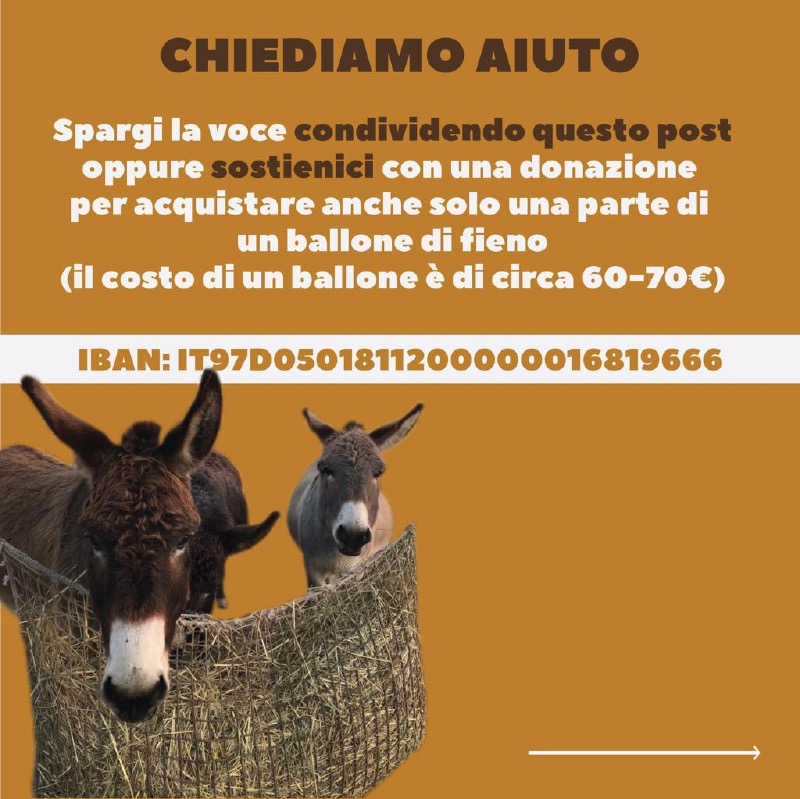 (L’Iban per sostenere con delle donazioni l’acquisto delle balle di fieno: IT97D0501811200000016819666)