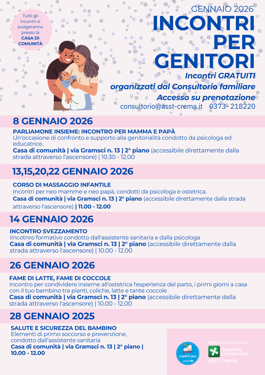 Info e prenotazioni: consultorio@asst-crema.it - 0373 218220
