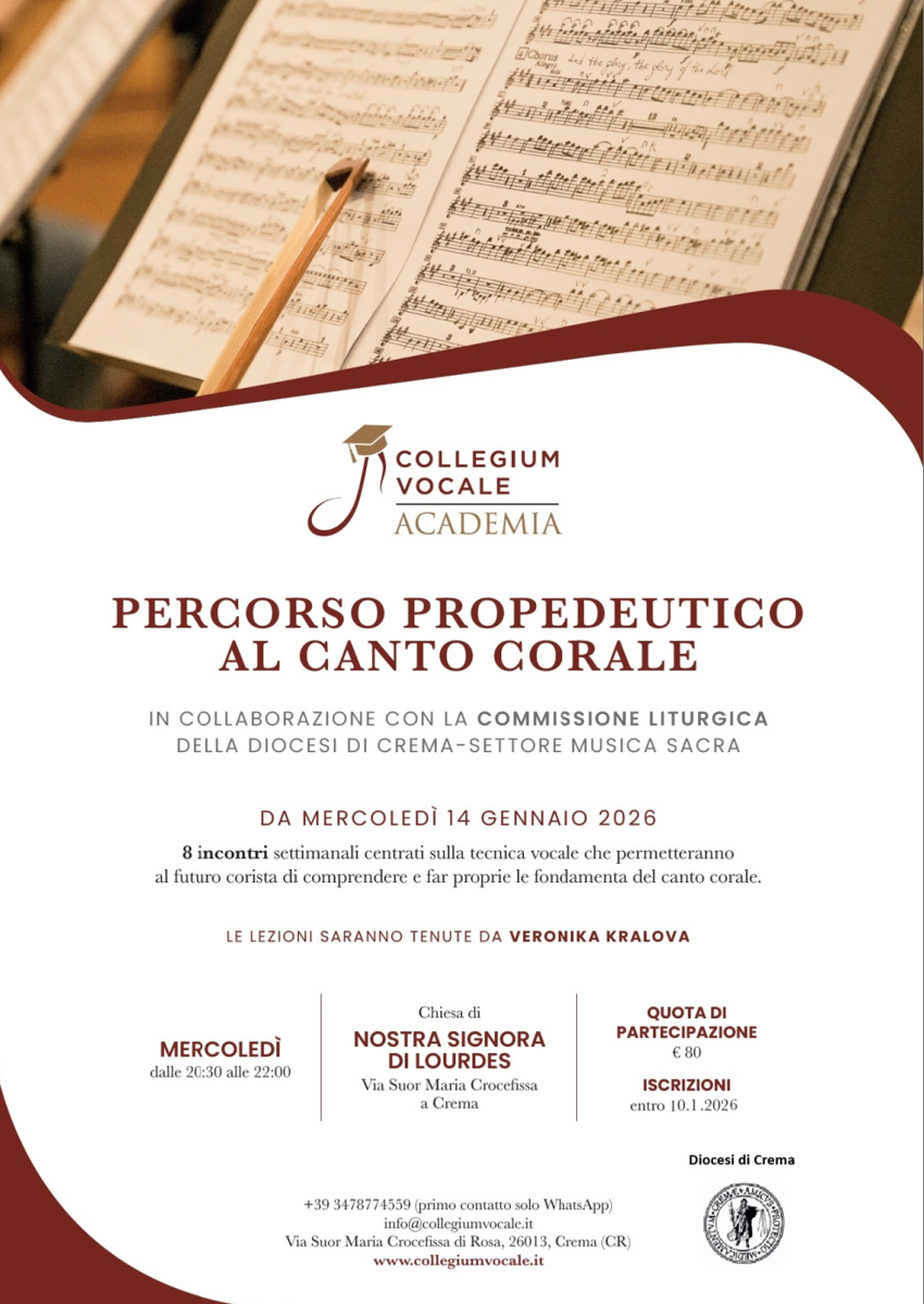 Info e prenotazioni: 347 877 4559 primo contatto solo WhatsApp, info@collegiumvocale.it, www.collegiumvocale.it