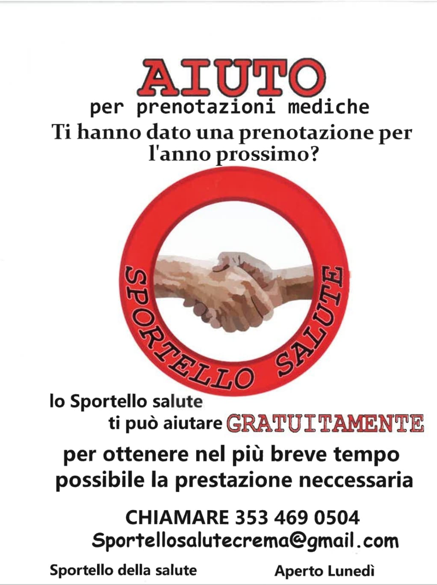 Info: 353 469 0504, sportellosalutecrema@gmail.com