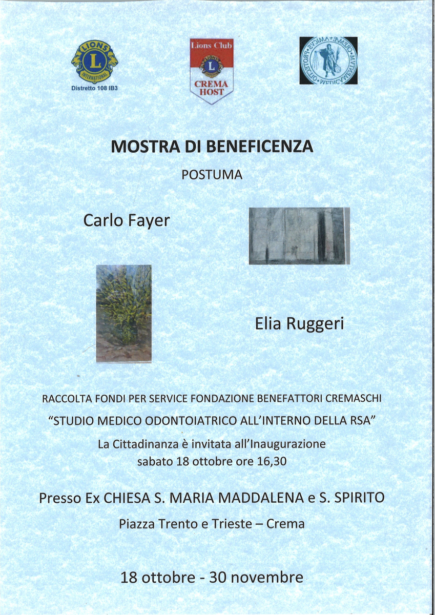 Mostra delle opere di Elia Ruggerie Carlo Fayer. Raccolta fondi per la fondazione Benefattori Cremaschi a sostegno del progetto Studio medico odontoiatrico all’interno della Rsa.