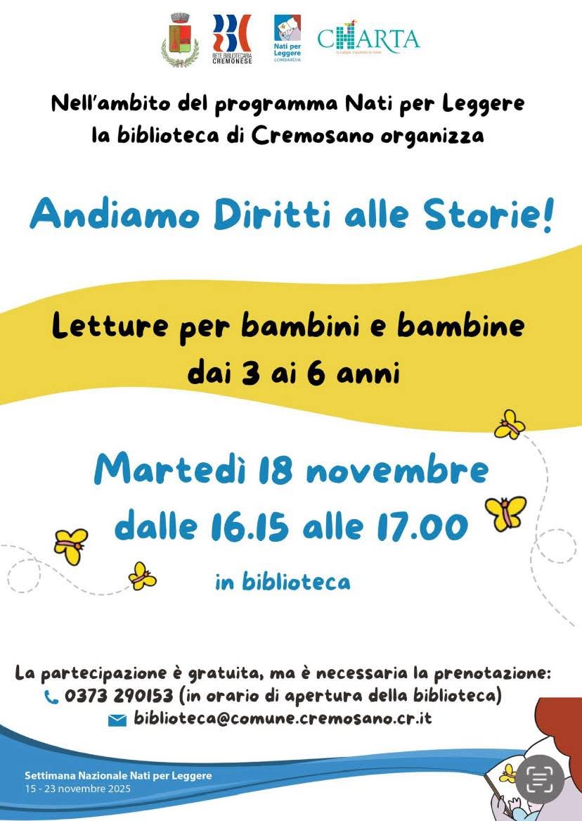 Info e prenotazioni: 0373 290153 in orario di apertura della biblioteca; biblioteca@comune.cremosano.cr.it