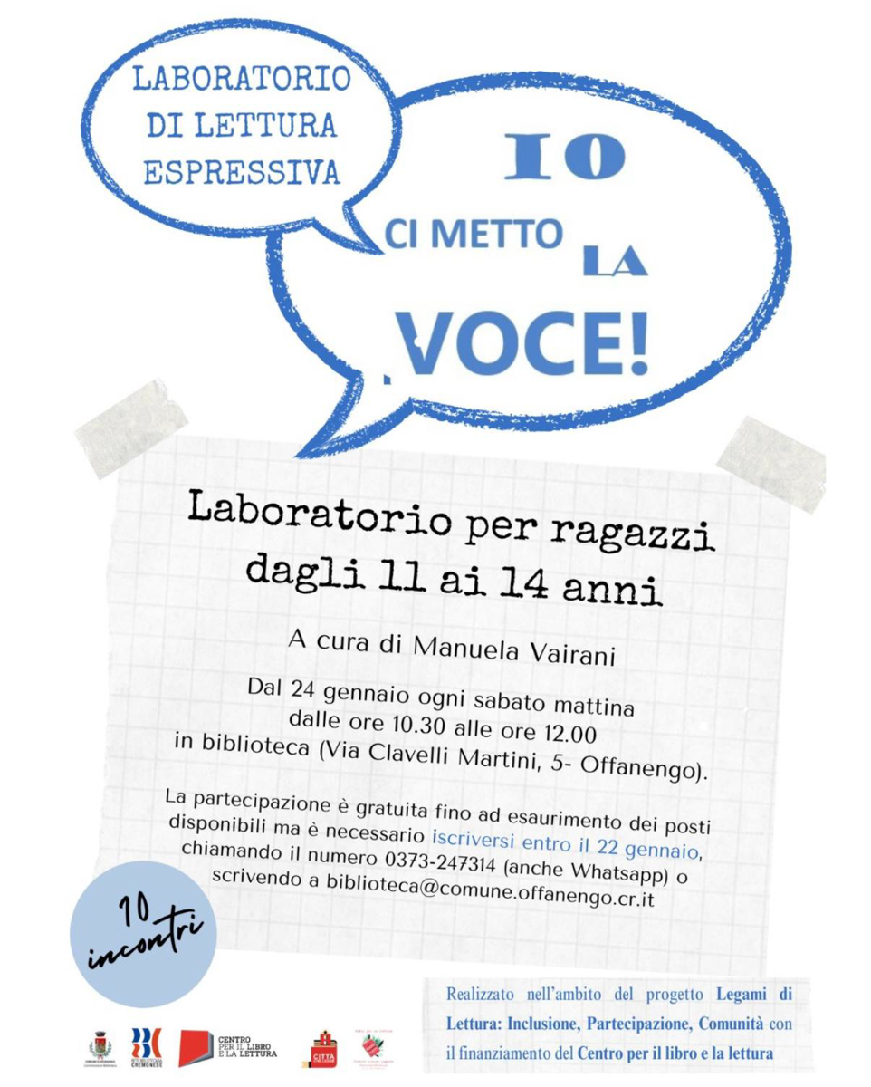 Info e prenotazioni: 0373 247314, biblioteca@comune.offanengo.cr.it