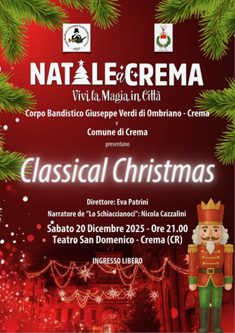 Concerto natalizio del Corpo Bandistico Giuseppe Verdi di Ombriano - Crema. Direttore: Eva Patrini. Narratore de “Lo Schiaccianoci”: Nicola Cazzalini. Evento del programma “Natale a Crema”.