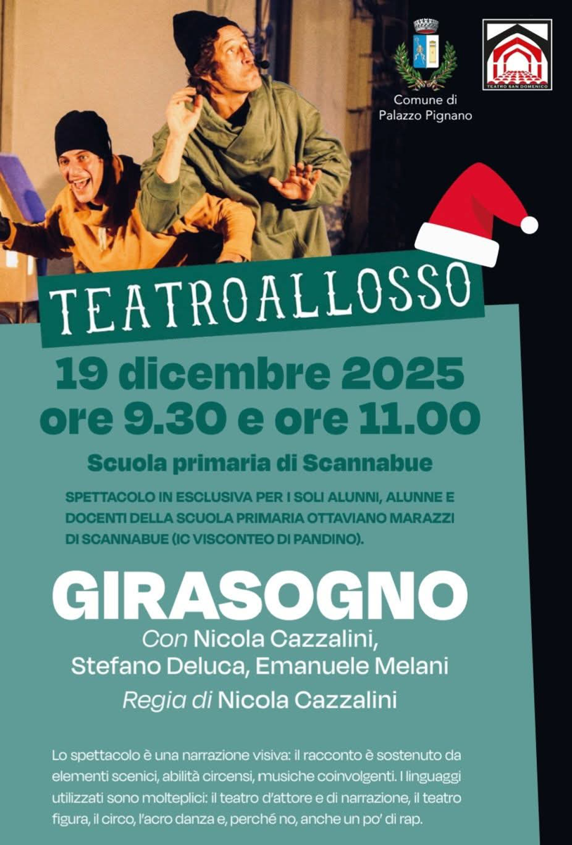 Spettacolo riservato agli alunni, alunne e docenti della Scuola primaria Ottaviano Marazzi di Scannabue (IC Visconteo di Pandino). Due repliche: alle 9:30 e alle 11:00. Con Nicola Cazzalini, Stefano Deluca, Emanuele Melani. Regia di Nicola Cazzalini. Narrazione visiva con elementi scenici, abilità circensi, musiche; linguaggi misti tra teatro d’attore e di narrazione, teatro di figura, circo, acrodanza e rap.