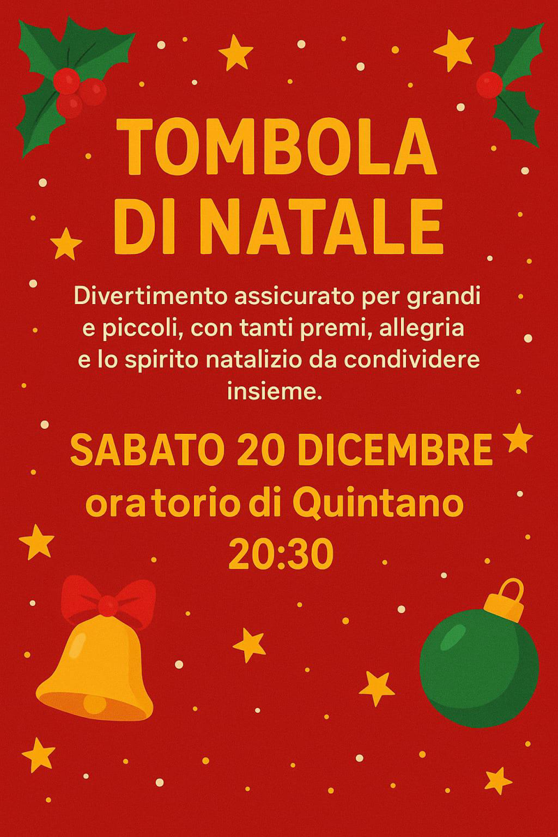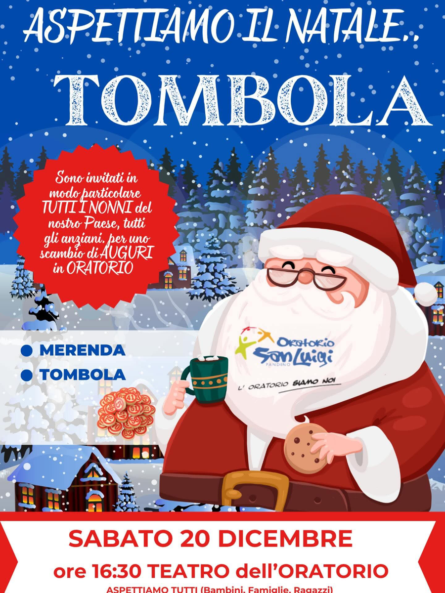 Invito speciale rivolto in particolare a tutti i nonni e agli anziani del paese per uno scambio di auguri in oratorio. Merenda e tombola. Evento aperto a tutti: bambini, famiglie e ragazzi.