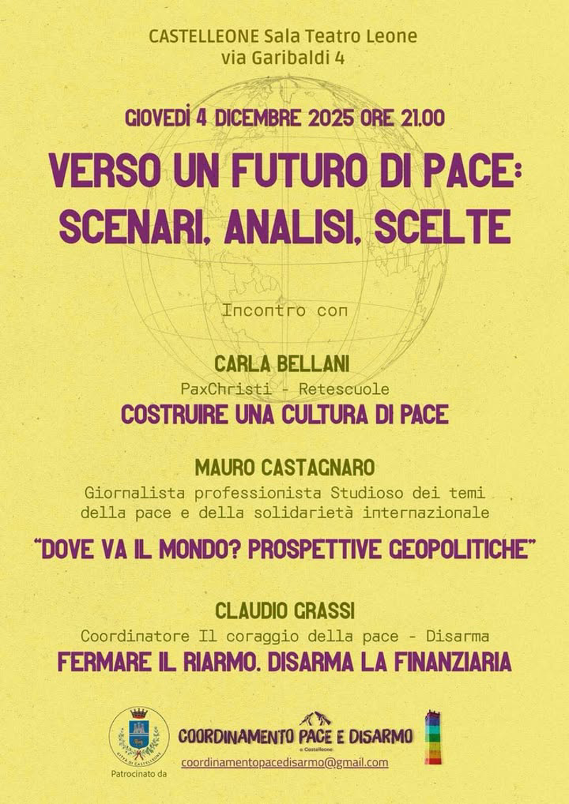 Info e prenotazioni: coordinamentopacedisarmo@gmail.com