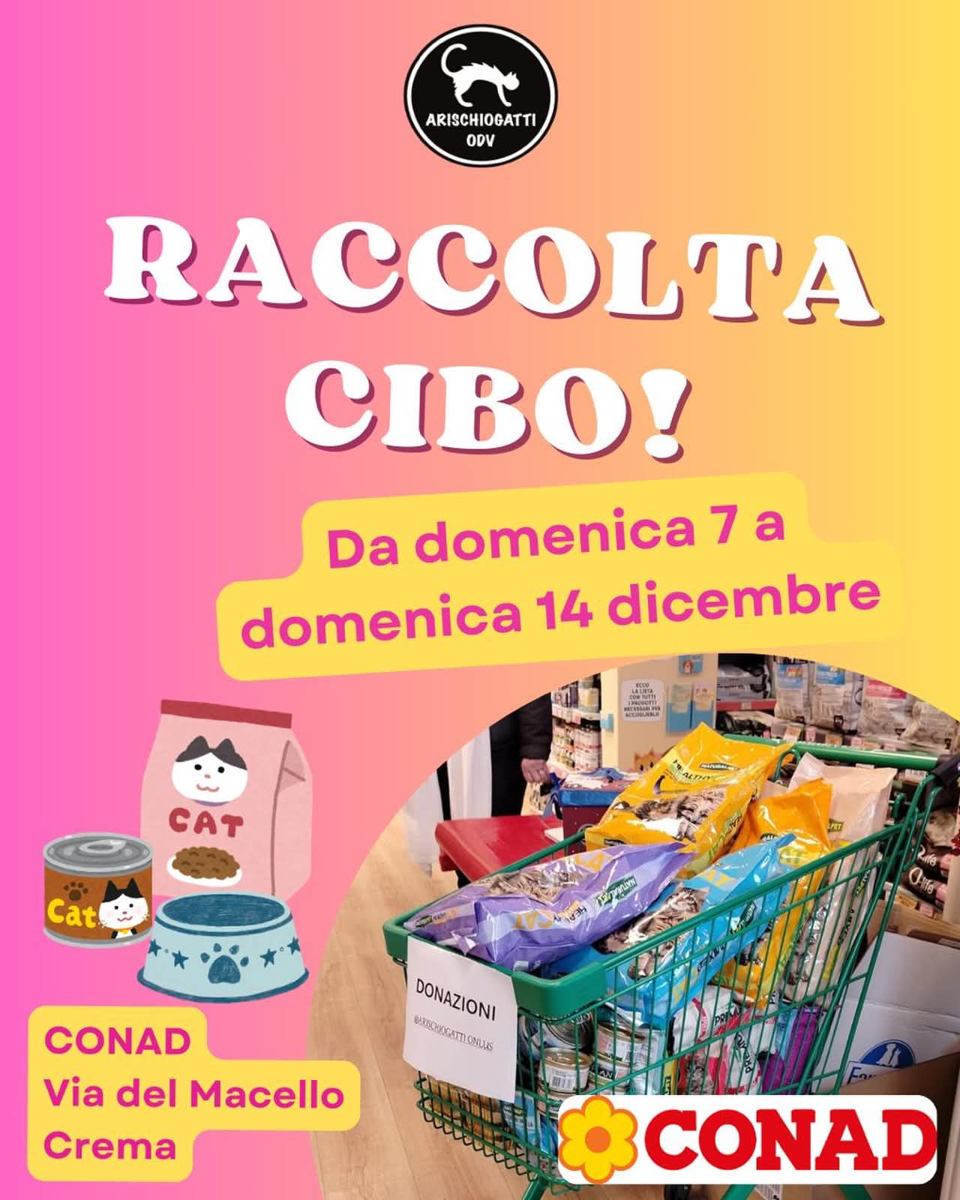 Raccolta di cibo per gatti promossa da Arischiogatti presso il Conad di via del Macello.