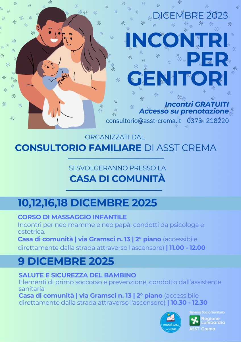 Info e prenotazioni: consultorio@asst-crema.it, 0373 218220