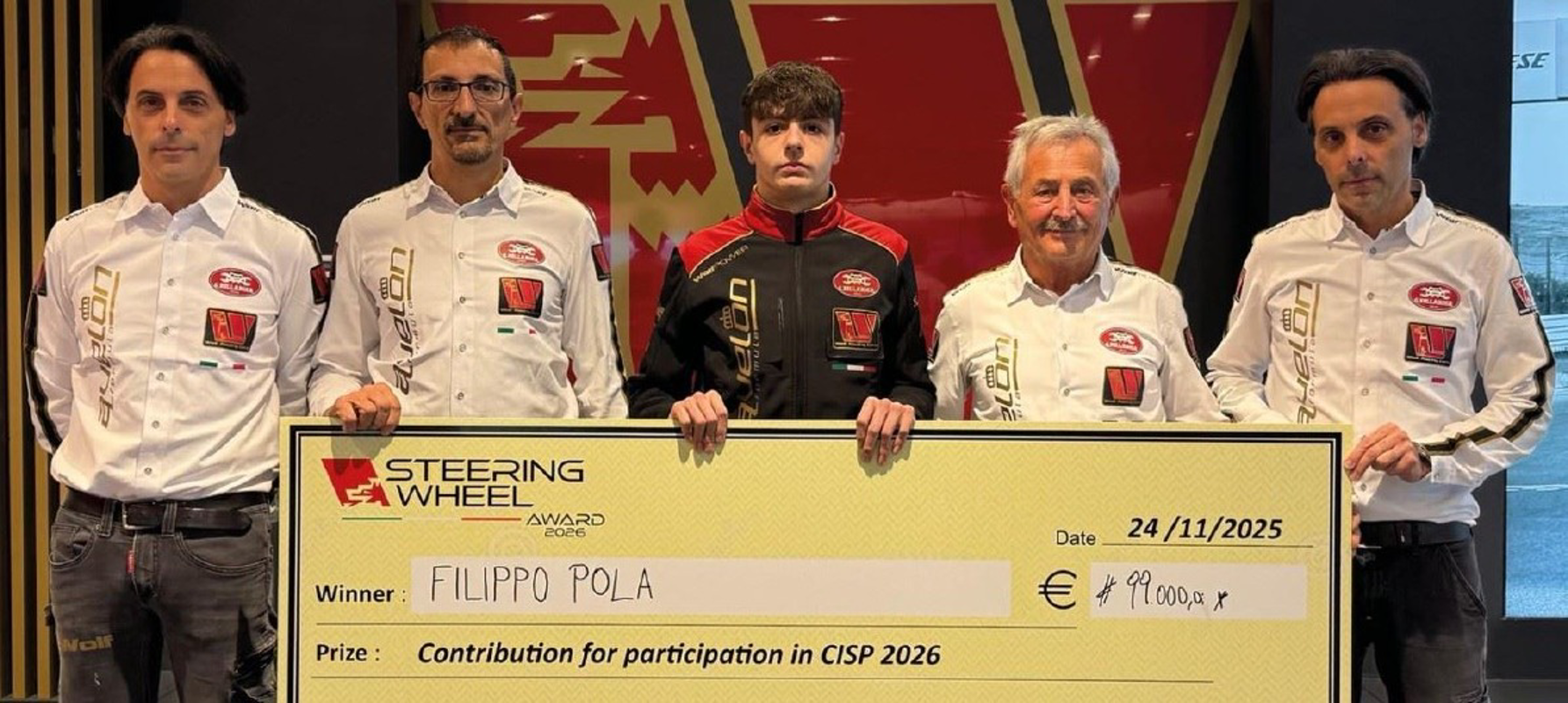 Il contest in questione, alla sua seconda edizione è lo Steering Wheel Award, ideato dal Wolf Racing Cars e rivolto a giovanissimi piloti provenienti dal karting. Vi hanno preso parte in trentatre, in rappresentanza di dieci Paesi, con un’età media di 15 anni e 8 mesi, affrontando un percorso formativo, teorico e pratico strutturato su tre giorni: uno presso la sede della casa costruttrice che fornisce le Wolf GB08 Raiden motorizzate Aprilia con le quali si disputa il tricolore prototipi, e due all’autodromo del Levante, a Binetto (Bari). Filippo ha messo tutti in fila. Primo assoluto. Per lui un assegno da 99.000 euro che gli permetterà di iscriversi gratuitamente al campionato ed un posto come pilota ufficiale del team della famiglia Bellarosa di Sarezzo (Brescia) sulla monoposto del Racing Wolf a bordo della quale disputerà il Campionato Italiano Sport Prototipi 2026 organizzato da Aci Sport che scatterà nel week end dal 24 al 26 aprile all’autodromo Enzo e Dino Ferrari Imola. Poi tappe a Misano a maggio, a Monza a giugno, a Vallelunga a luglio, di nuovo a Misano a settembre e al Mugello dal 23 al 25 ottobre, a conclusione del calendario.
