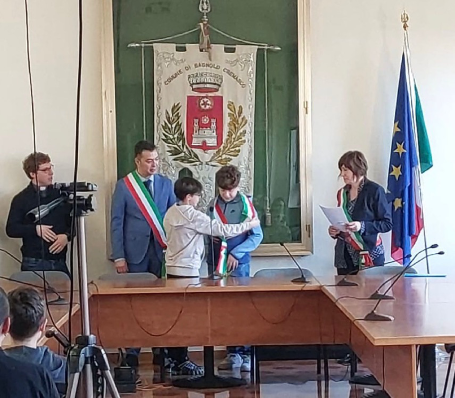 Avvicendamento in comune. Sotto gli occhi dei primi cittadini Orietta bertio e Doriano Aiolfi, il sindaco dei ragazzi di Chieve e Bagnolo, Karol Magro, ha passato la fascia tricolore al suo erede, Alberto Fusar Poli, che ha giurato di onorare il suo ruolo e ha nominato come vice sindaco Daniele Pancotti. Quindi sono stati nominati i consiglieri comunali: Manuel Ricci, Nicolò Ferri, Ziad Farahat, Eya Melki, Matteo Nava, Luis Pugliese, Samuele Vitale, Giorgio Mazzetti, Zoe Alghisi e Filippo Francesconi per la secondaria di primo grado di Bagnolo Cremasco, mentre per a primaria di Bagnolo, Matteo Fusar Poli e Francesco Verdelli e Giorgia Rossetti per la primaria di Chieve.