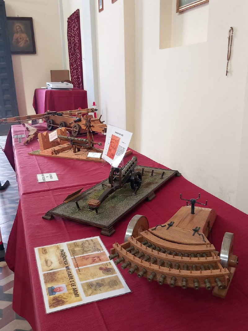 Non sono mancate neppure le visite a un’esposizione molto particolare, all’interno della chiesetta dedicata alla Madonna, con i modelli leonardeschi funzionanti di ingegneria militare a cura di Enzo Poli, e i banchetti espositivi tematici.