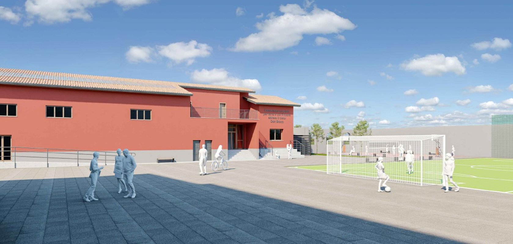 Nello specifico il progetto prevede l'apertura di un passo carrabile su via Verdi tramite la demolizione e la parziale ricostruzione del fabbricato ex filanda Rogorini per la creazione di un locale cucina e servizi comunicante con la sala della comunità per la quale è previsto il rifacimento del tetto con l'installazione di un impianto fotovoltaico. In cortile è invece prevista la realizzazione di campi da gioco polivalenti (un campo da calcio ed uno da basket e pallavolo) ed un’area per i più piccoli.