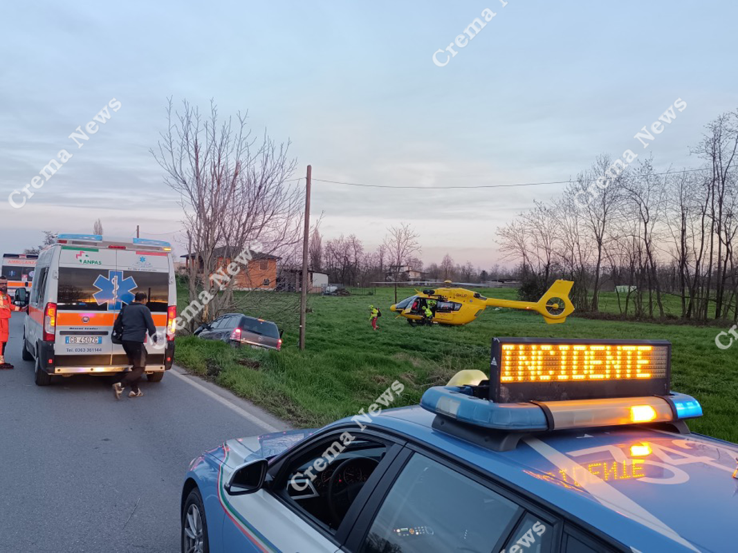 Oggi intorno alle 17.30 una Opel Zafira che percorreva la Melotta in territorio di Palazzo Pignano e con direzione Trescore, lungo il rettilineo è finita fuori strada sulla sua destra e ha terminato la sua corsa contro un albero. Le tre persone che erano a bordo, tre uomini residenti a Brescia, sono rimasti feriti, hanno 27, 28 e 53 anni. Il più giovane è stato soccorso da un'eliambulanza che lo ha trasportato in ospedale dove è stato accolto in codice rosso. Sul posto sono intervenute auto medica e due ambulanze di Lodi. Gli altri due feriti sono stati portati in ambulanza in ospedale, dove sono stati accolti in codice giallo. I rilievi sono a cura della Polstrada di Crema, mentre i carabinieri sono arrivati per fare viabilità