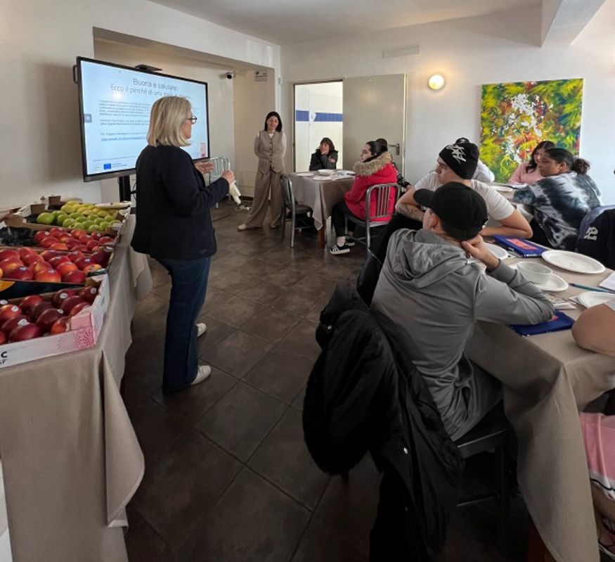 Europea’, campagna di promozione cofinanziata dall’Ue e dal Consorzio Mela Alto Adige. L’iniziativa, rivolta agli studenti degli istituti alberghieri e professionali italiani, ha lo scopo di coinvolgere i giovani in un’attività stimolante, che permette loro di approfondire qualità e caratteristiche delle diverse varietà di   mele. Il Consorzio Mela Alto Adige ha offerto anche agli studenti dello Sraffa un’adeguata formazione, sia rispetto alle tante varietà di frutto, che alla versatilità in cucina, dove è ingrediente prezioso per tante ricette. Nell’ambito delle attività formative tenutesi presso il laboratorio enogastronomico dello Sraffa in via Dogali, gli esperti del Consorzio e dei soggetti proponenti hanno parlato delle proprietà delle mele e dei loro molteplici utilizzi. Ora inizia la fase successiva, nella quale gli studenti guidati dal docente Ferdinando Sapienza   elaboreranno e realizzeranno una ricetta che ha nella mela la vera protagonista.