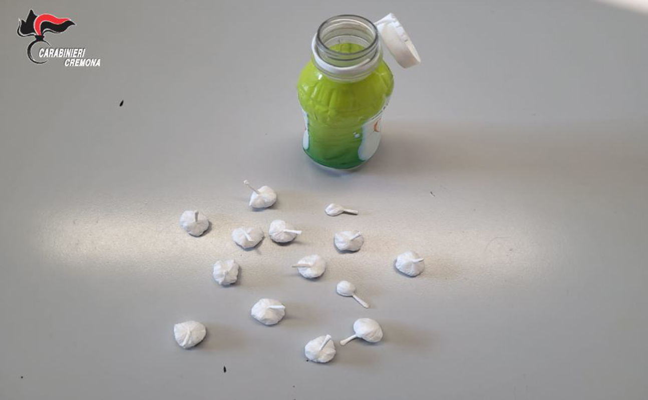 Ieri pomeriggio verso le 16 i militari hanno notato che il conducente di un'auto aveva gettato una bottiglietta di vetro dal finestrino. La pattuglia ha fermato l'auto e identificato il conducente, quindi i carabinieri sono andati a recuperare la bottiglietta scagliata fuori dal finestrino e hanno scoperto che al suo interno c'erano 14 dosi di cocaina, pronte per essere vendute.