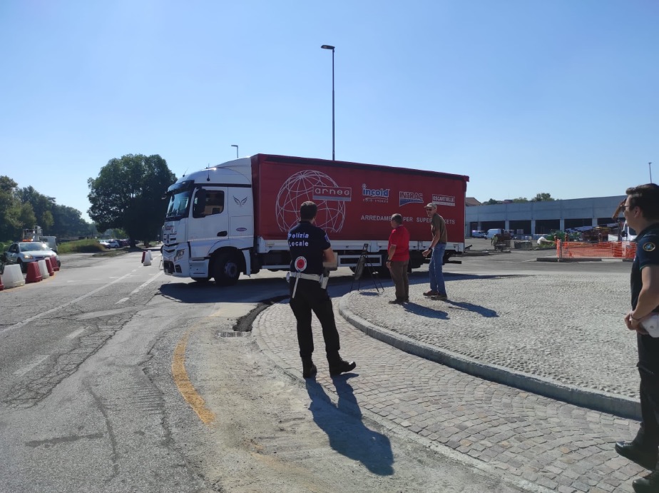 Fine della querelle innescata sabato mattina quando sono stati fatti transitare dalla rotonda alcuni autoarticolati simili a quelli che, quotidianamente devono raggiungere il supermercato Famila, in costruzione in un'area che si affaccia sulla nuova rotatoria.