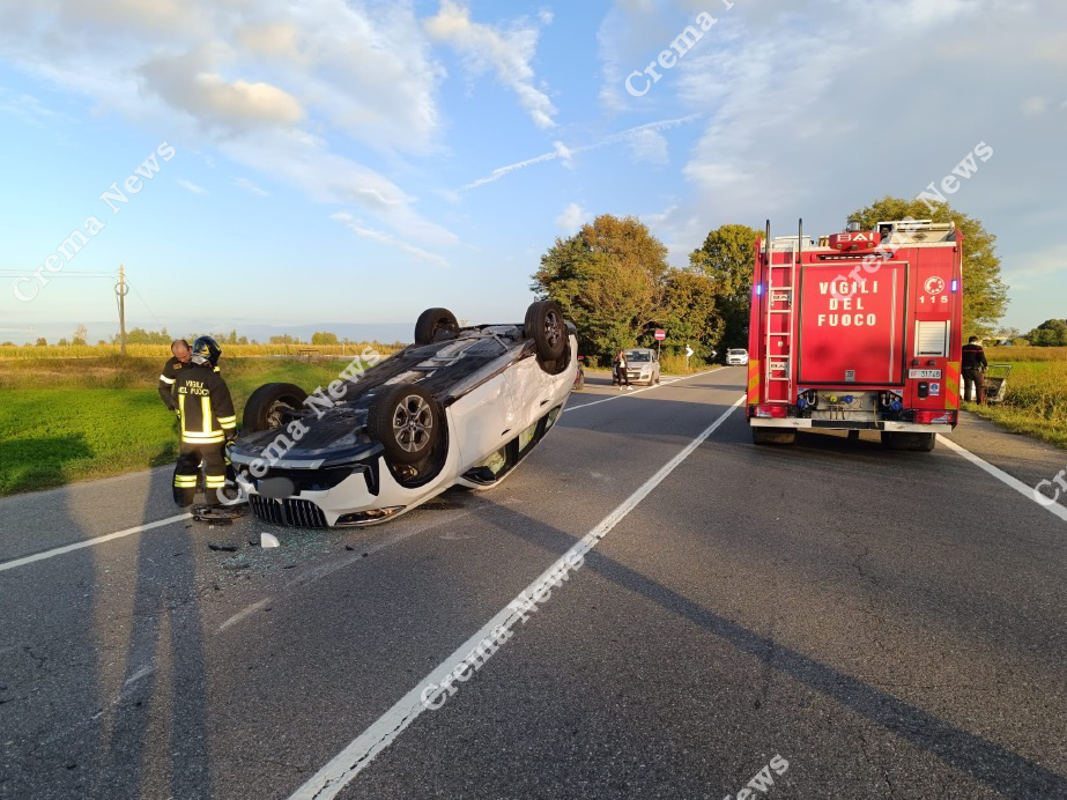 Scontro tra una Seat Ibiza e una Bmw. Secondo i rilievi dei carabinieri, il conducente della Ibiza, un 49enne della provincia di Cremona, mentre si stava dirigendo verso Castelleone, all'altezza dello svincolo per Corte Madama, ha perso il controllo della sua auto ed è finito nella corsia opposta proprio mentre da Castelleone stava arrivando una Bmw. probabilmente la conducente della Bmw, una donna di 54 anni della provincia di Milano, ha visto arrivare la Ibiza e ha cercato di evitarla, sbandando a sua volta, ma venendo colpita ugualmente dalla Seat e finendo per ribaltarsi sulla carreggiata. I due conducenti sono usciti da soli dalle loro auto e sono stati soccorsi da due ambulanze della Croce Verde di Castelleone e di Cremona. La donna è stata portata in ospedale a Cremona e ricevuta in codice giallo. Nel sinistro ha riportato delle contusioni. Illeso il conducente della Seat. Sul posto due pattuglie dei carabinieri che, oltre ai rilievi, hanno organizzato sulla Paulllese un senso unico alternato. Lunghe code per circa un'ora. Sono stati fatti arrivare anche i vigili del fuoco di Crema per la messa in sicurezza delle due vetture.
