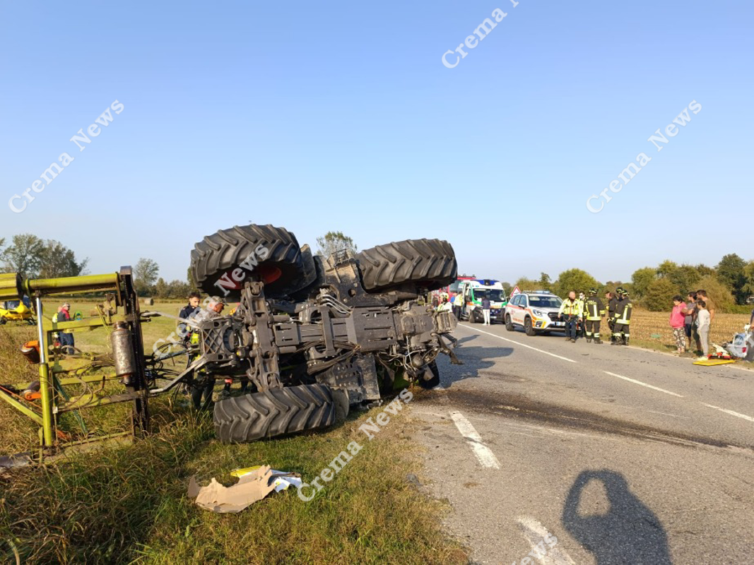 Violento scontro oggi intorno alle 16 a Credera sulla strada che porta al ponte sull'Adda e poi a Cavenago, in via Vagni. Si sono scontrati una Bmw condotta da un 29enne lodigiano e un trattore alla cui guida c'era un agricoltore di 63 anni. Nel sinistro il trattore si è rovesciato e l'auto è finita in un campo. Secondo la ricostruzione dei carabinieri, il mezzo agricolo stava percorrendo la via Vagni e ha girato a sinistra per entrare nel campo quando la Bmw lo ha centrato, strappandogli una ruota e rovesciandolo. L'auto è poi finita a sua volta in un campo sulla destra della strada. Il 29enne è rimasto seriamente ferito, tanto che i soccorritori hanno chiamato un eliambulanza che è arrivata da Milano e ha preso in carico il ferito, portando all'ospedale S. Carlo di Milano, dove è stato accolto in codice giallo. Illeso l'autista del trattore. Strada a senso unico alternato per dar mezzo ai carabinieri di eseguire i rilievi e far spostare i mezzi.