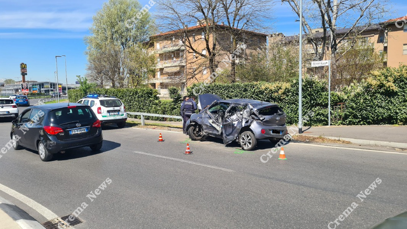 Il sinistro è avvenuto all'imbocco di via Milano quando una Hyundai si è immessa in via Milano contemporaneamente a un Tir. Il pesante mezzo non si è accorto che sulla sua destra c'era l'auto e ha stretto la curva, andando a impattare contro la Hyundai e schiacciandola la contro il guardrail. I soccorsi sono arrivati con auto medica e ambulanza e il personale si è preso cura del conducente della Hyundai che ha riportato alcune contusioni. L'uomo un cremasco di 45 anni, è stato accompagnato al pronto soccorso, dove è stato ricevuto in codice giallo.