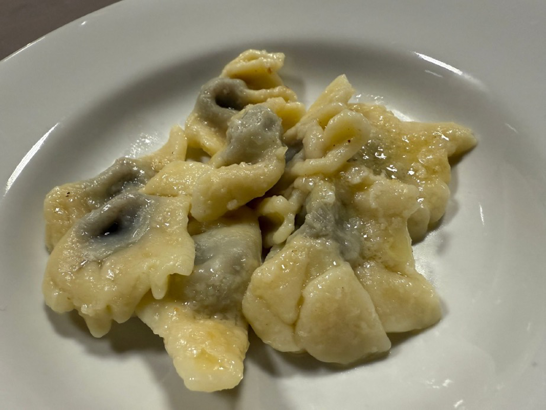 Pia Gobbato, da sempre presente anche nella circuito dei ristoratori della Confraternita, dopo i tortelli (ripassati ai tavoli ben quattro volte) ha poi preparato uno dei suoi arrosti speciali con cavolfiori dorati e, per concludere in bellezza la serata con un tocco cremasco, i suoi chisulì.