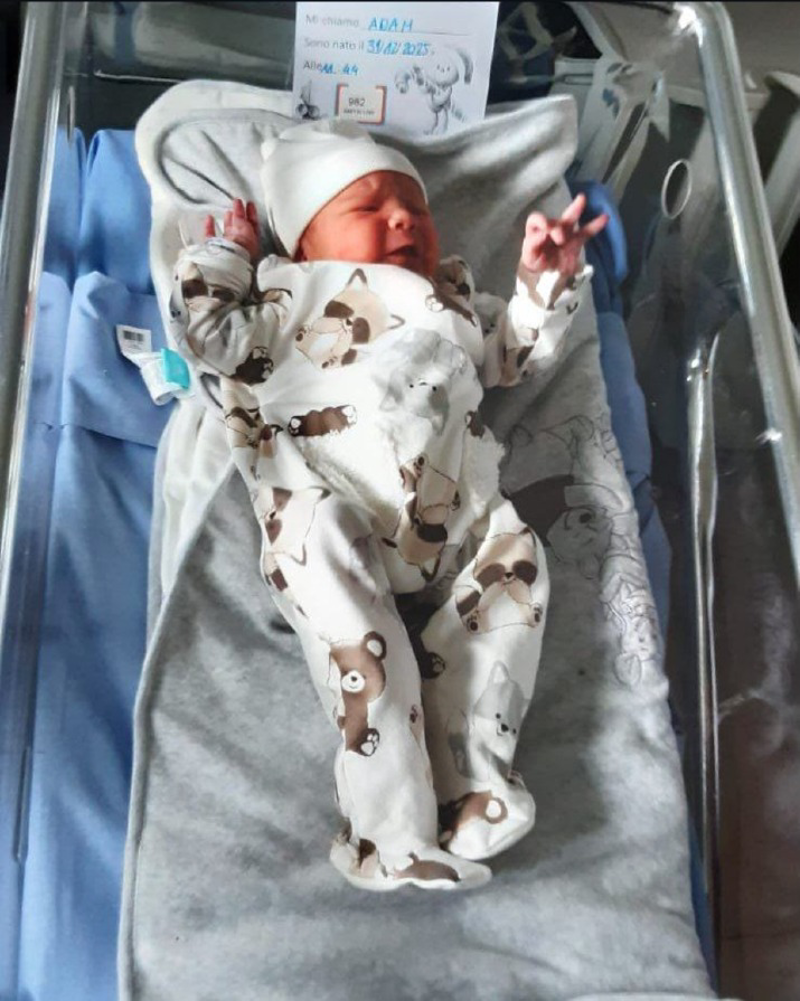 L’ultimo nato del 2025 è Adam, venuto alla luce il 31 dicembre alle 11.44 con parto cesareo e per un peso di 3610 grammi. La mamma Hadir si trovava a Zorlesco, in visita ai genitori, quando è arrivato il momento della nascita.
