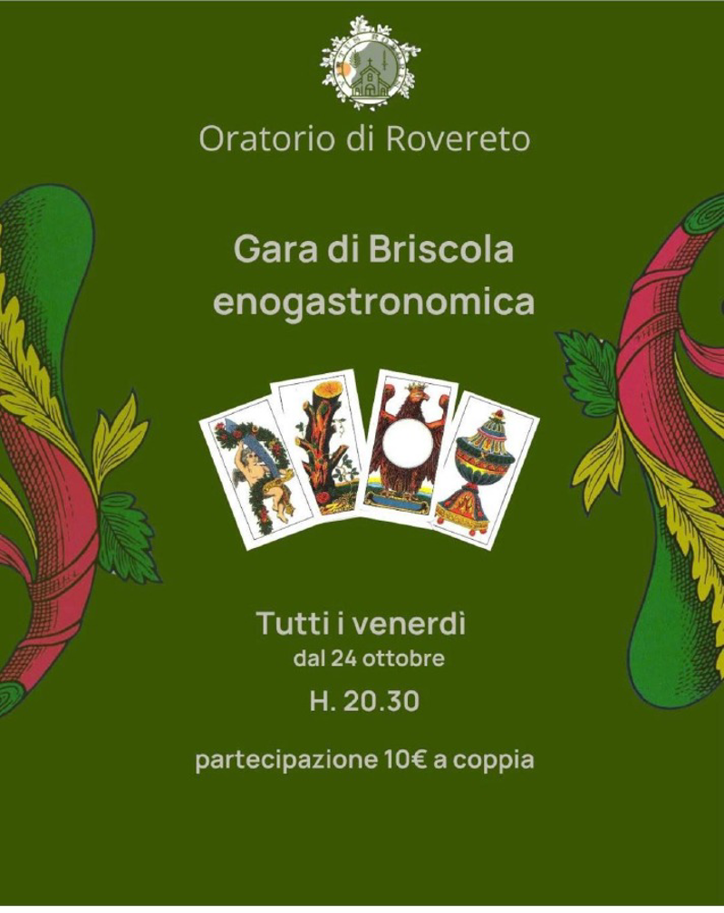Gara di briscola a tema enogastronomico con appuntamento settimanale ogni venerdì a partire dal 24 ottobre.