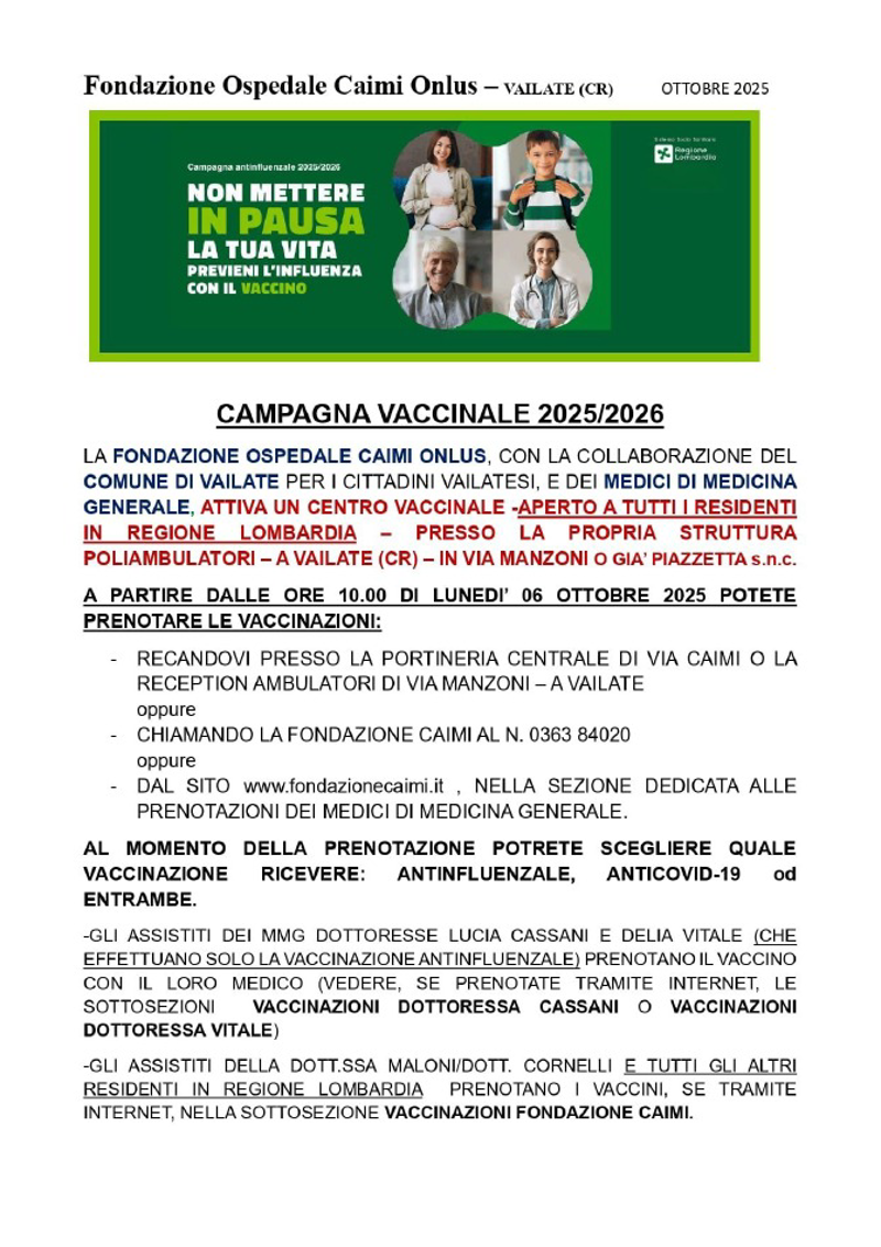 Info e prenotazioni: 0363 84020; www.fondazionecaimi.it; portineria centrale via Caimi e reception ambulatori via Manzoni di Vailate