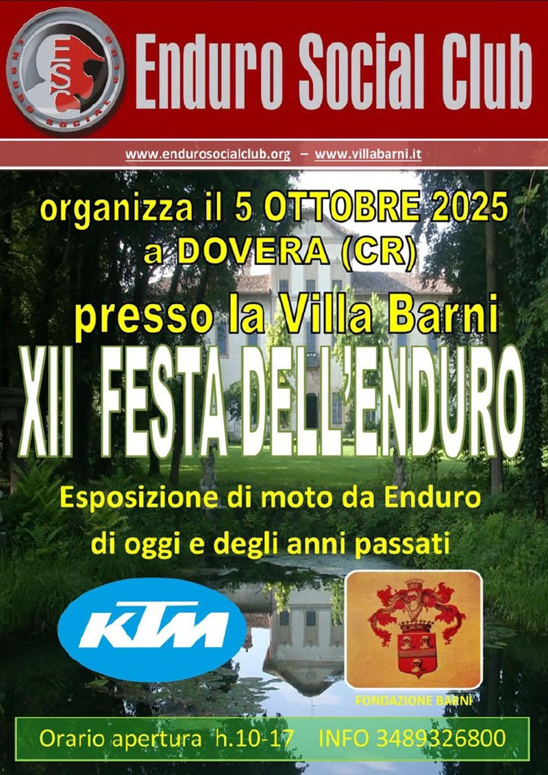 Info: 348 932 6800, www.endurosocialclub.org, www.villabarni.it