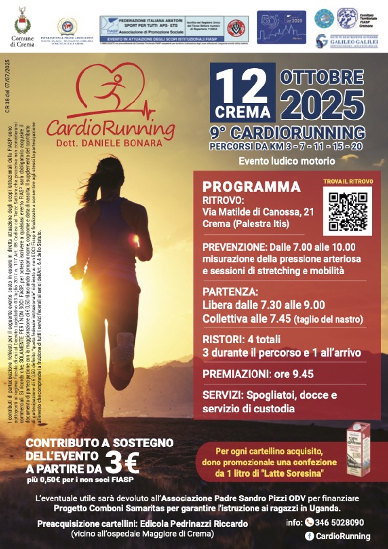 Quota 3 € soci Fiasp. 3,50 € non soci FIASP. In omaggio 1litro di latte Soresina.