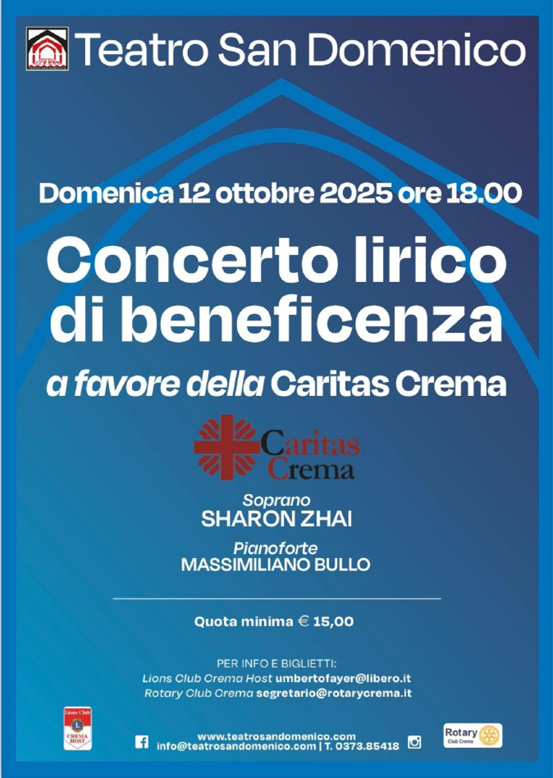 Concerto a favore della Caritas Crema con il soprano Sharon Zhai e al pianoforte Massimiliano Bullo.