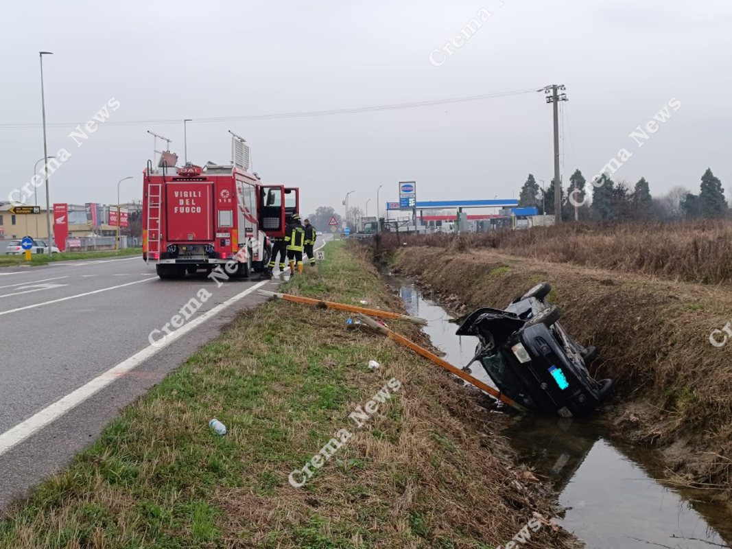Oggi intorno alle 11.30 una giovane di 21 anni di Cremona alla guida di una Fiat Panda è uscita dalla zona industriale dell'Oriolo senza accorgersi che dalla sua sinistra stava sopraggiungendo un camion dell'Aprica dedicato alla raccolta dell'immondizia e che era diretto verso Crema. Scontro inevitabile e piuttosto violento, con la Panda che ha attraversato tutta la carreggiata ed è finita in un fosso con un po' d'acqua che scorre lungo la Paullese, dalla parte opposta della direzione di marcia del camion. Nell'urto la Panda si è ribaltata e la guidatrice è rimata imprigionata tra le lamiere.