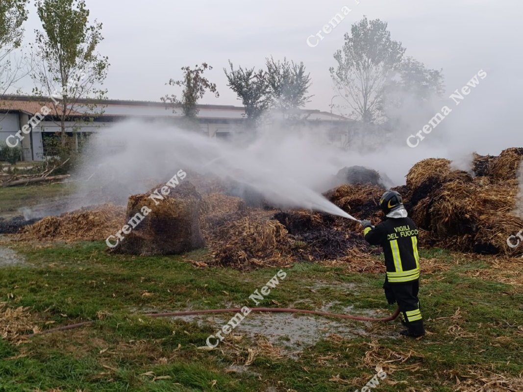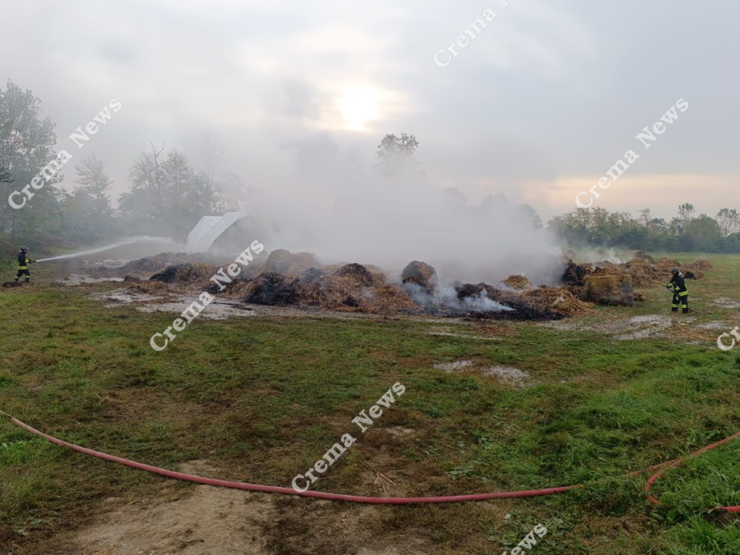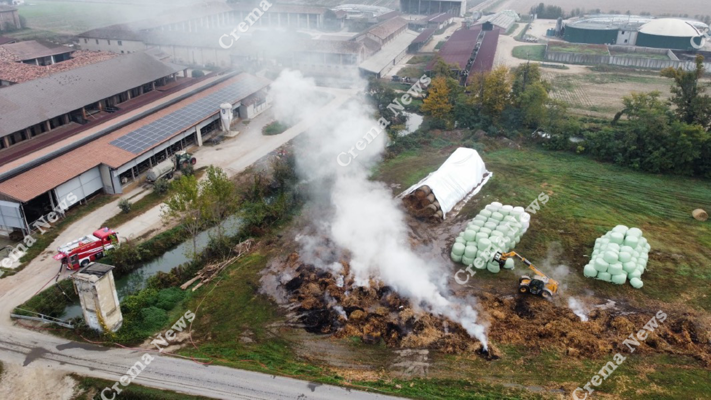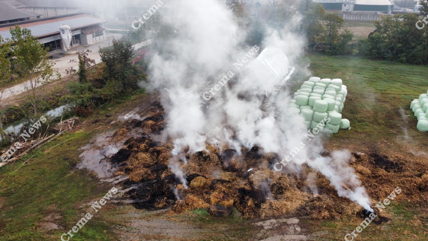 Un vasto incendio ha interessato un grande cumulo di rotoballe sistemate in un campo in prossimità dell'azienda agricola Piloni, in via Jacini. L'allarme è stato dato intorno alle 6.30 di questa mattina e sul posto ci sono i vigili del fuoco di Crema. Grazie al pronto intervento i pompieri sono riusciti a limitare i danni a un solo cumulo di rotoballe, presumibilmente un centinaio, mentre gli altri cumuli e la parte della fattoria più prossima all'incendio non hanno subito danni.