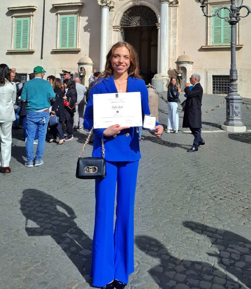 Stella viene anche lei dal liceo scientifico Leonardo da Vinci di Crema, Ieri mattina, insieme ad altri 24 ragazzi e con altrettanti professionisti nominati Cavalieri del lavoro, è stata convocata al Quirinale dove il capo dello stato Sergio Mattarella le ha conferito il titolo di Alfiere del lavoro.