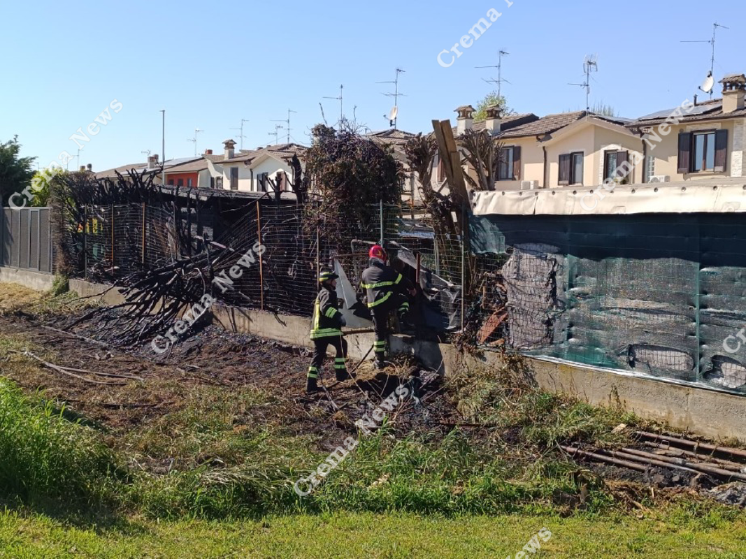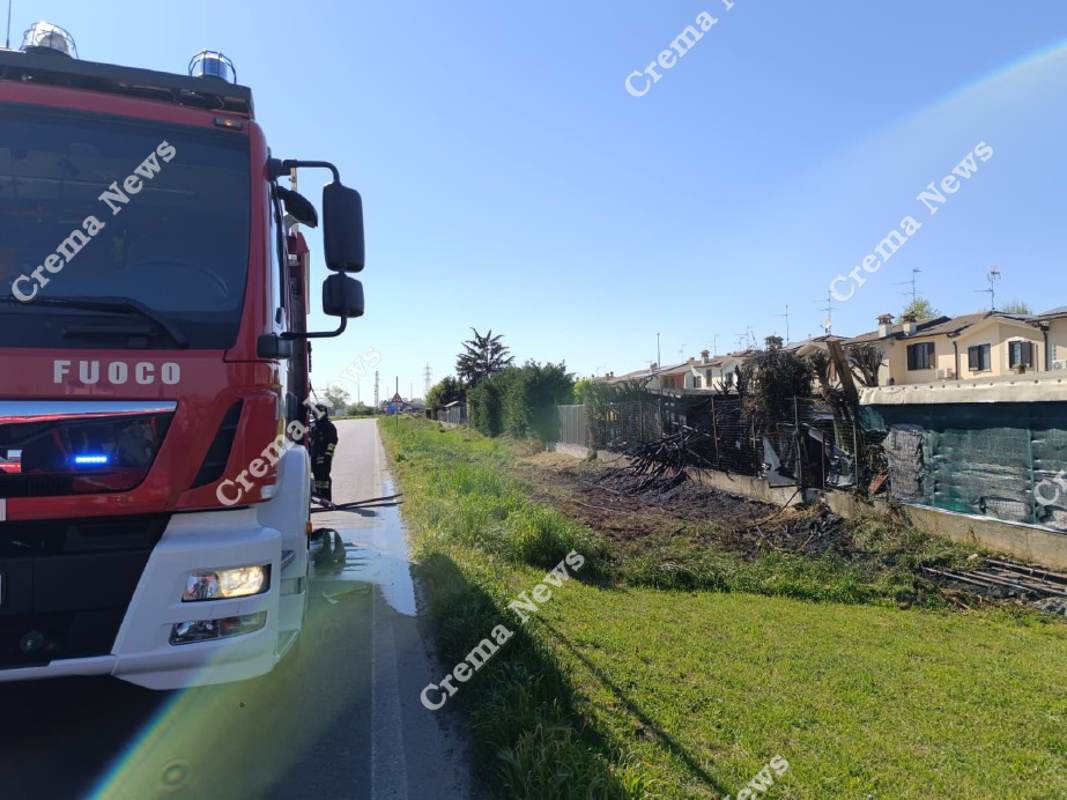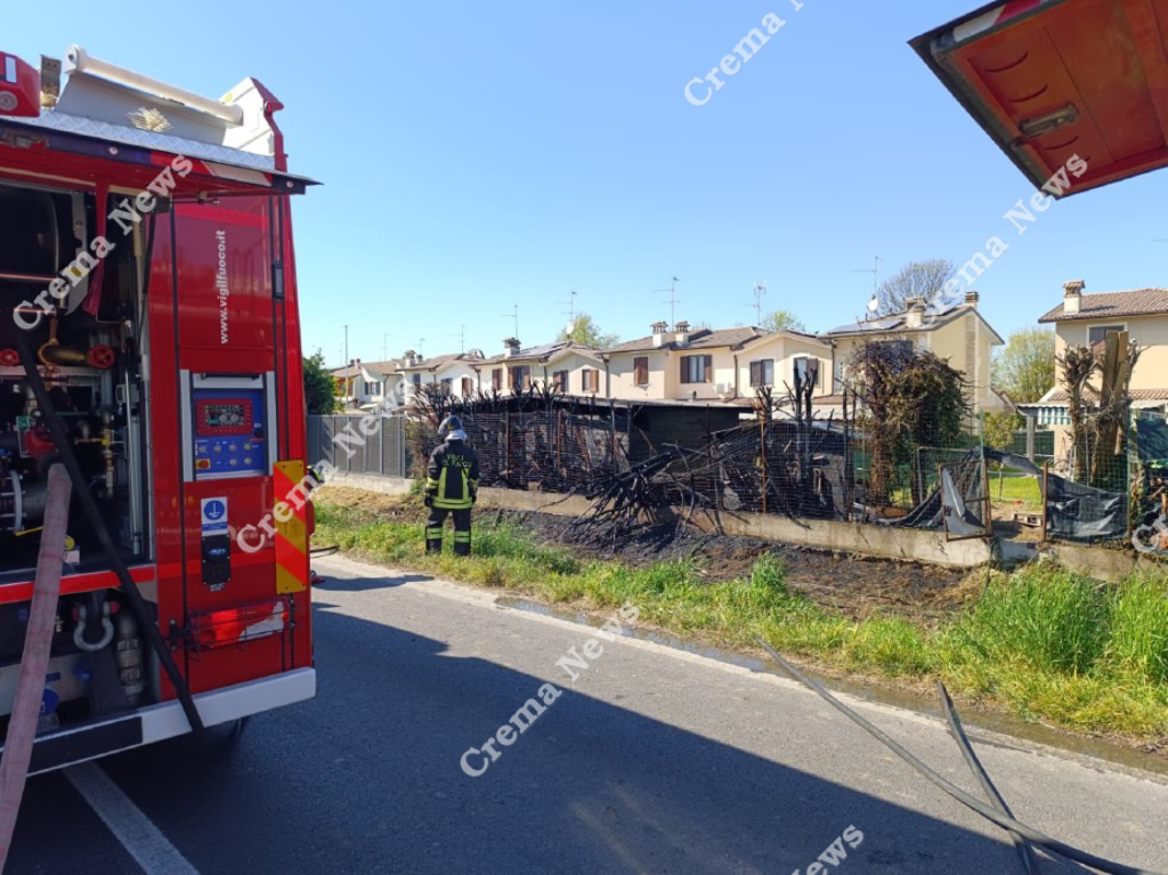 L'allarme è stato dato intorno alle 15 e i vigli del fuoco sono intervenuti subito, chiudendo la strada che dal rondò per Salvirola va verso la zona industriale del paese e poi Ticengo. Il fuoco ha interessato un paio di questi ripostigli in legno e le fiamme hanno trovato facile esca anche nella vegetazione che era avviluppata sulle reti di confine.