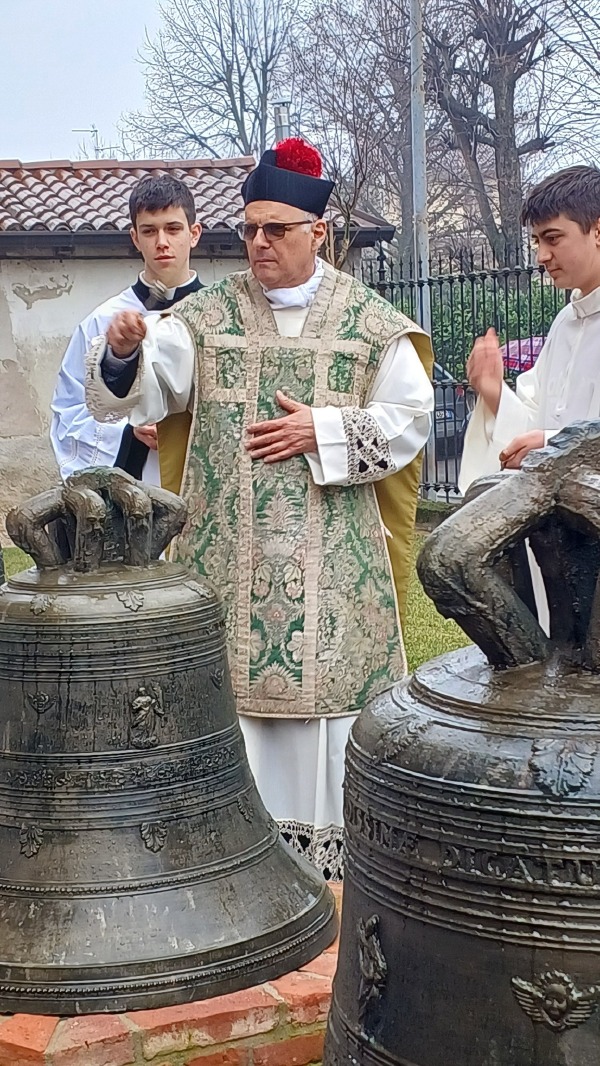 Dopo la loro sostituzione con un nuovo concerto, nel 2021 (inaugurazione sotto la neve da parte del vescovo di Cremona Antonio Napolioni), la Soprintendenza competente per territorio ha chiesto alla parrocchia che non venissero fuse. Così si è deciso di esporle in maniera permanente in un giardinetto accanto alla pieve stessa, dove il parroco don Giuseppe Nevi, alla presenza dei fedeli e degli amministratori comunali, ieri mattina le ha inaugurate e benedette.