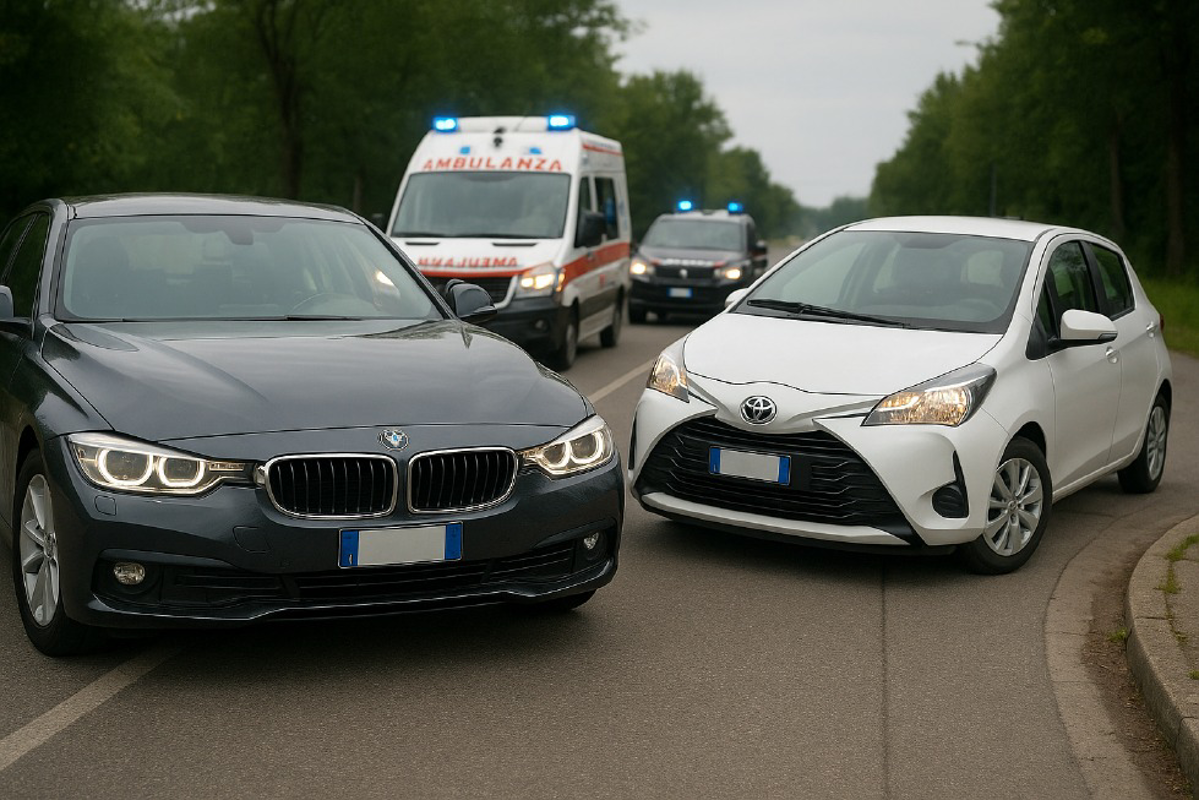 Incidente tra una Bmw e una Toyota Yaris oggi intorno alle 13.30, con una ragazza di 22 anni che è rimasta incastrata tra le lamiere della sua Yaris ed è stata liberata dall'intervento dei vigili del fuoco di Crema.