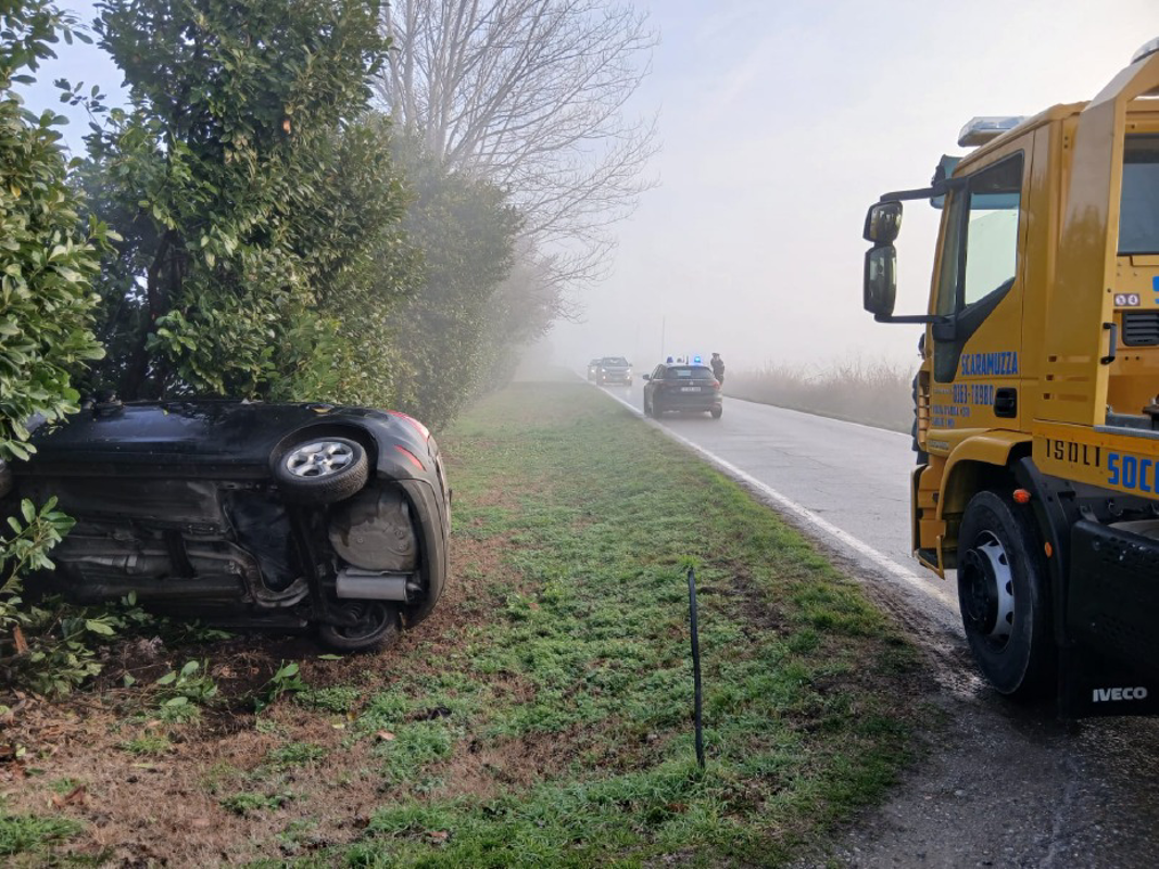 Poco dopo le 7.30, mentre si stava dirigendo verso la rotonda all’incrocio fra la Sp34, la Sp2 e la via Tanzi Montebello, per cause in via di accertamento, il giovane ha perso il controllo della Fiesta invadendo la corsia opposta e finendo contro la siepe di un maneggio dove l’utilitaria si è incagliata sdraiata su un fianco.