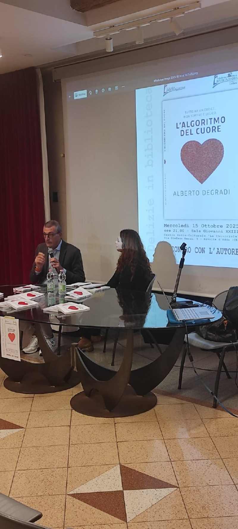 (Gianluca Maestri) Con la presentazione del libro L’algoritmo del cuore, di Alberto Degradi, originario di Rivolta ma da anni residente a Pandino, si è aperta ieri sera al centro socio-culturale La Chiocciola la stagione autunnale della rassegna Delizie in biblioteca a cura del comune e della consulta della cultura.
