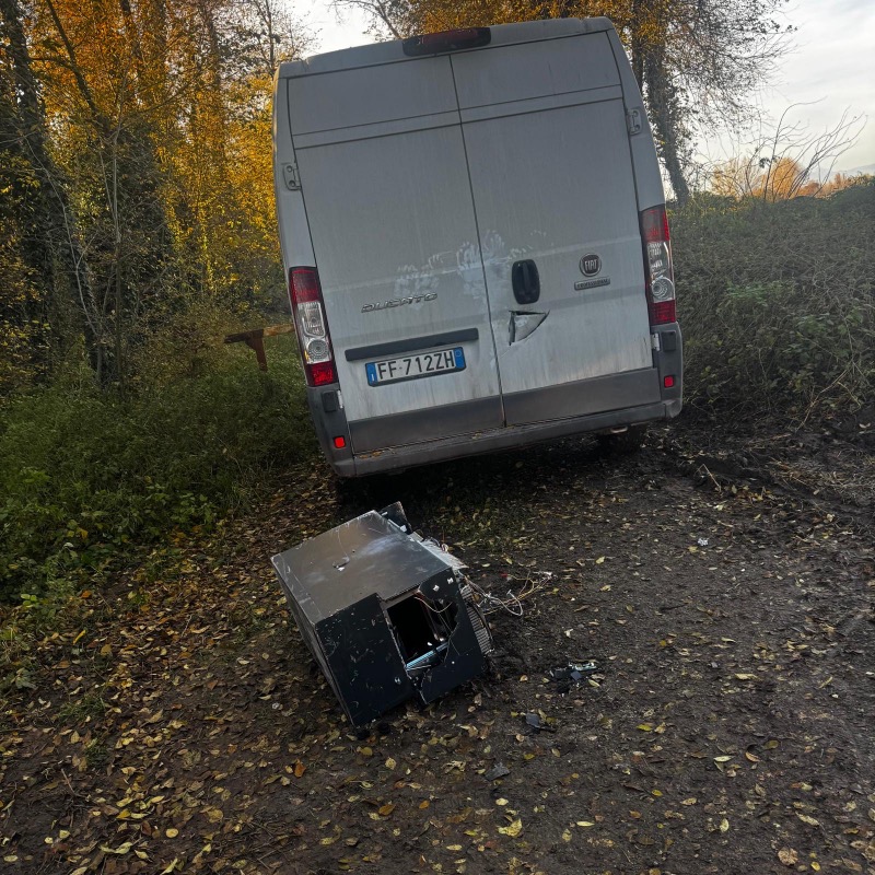 Nel primo pomeriggio poi la cassaforte, vuota, è stata trovata, insieme con il furgone della fuga, che è risultato rubato nel parco del Serio, al confine tra i territori di Romano di Lombardia e Camisano. Il furgone è risultato rubato ad Azzano S. Paolo e sul luogo del ritrovamento è arrivato il direttore della Conad derubata.