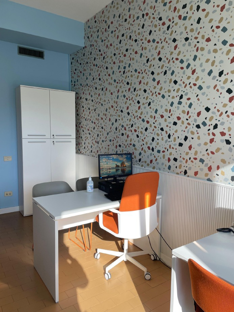 L’intervento, del valore complessivo di 20.000 euro, ha riguardato la riqualificazione delle pareti con l’applicazione di carta da parati in fibra di vetro e boiserie déco ed il completo rinnovo degli arredi: nuove scrivanie, armadi e lettini rendono ora gli ambienti più accoglienti per i piccoli pazienti e più funzionali per il personale sanitario.