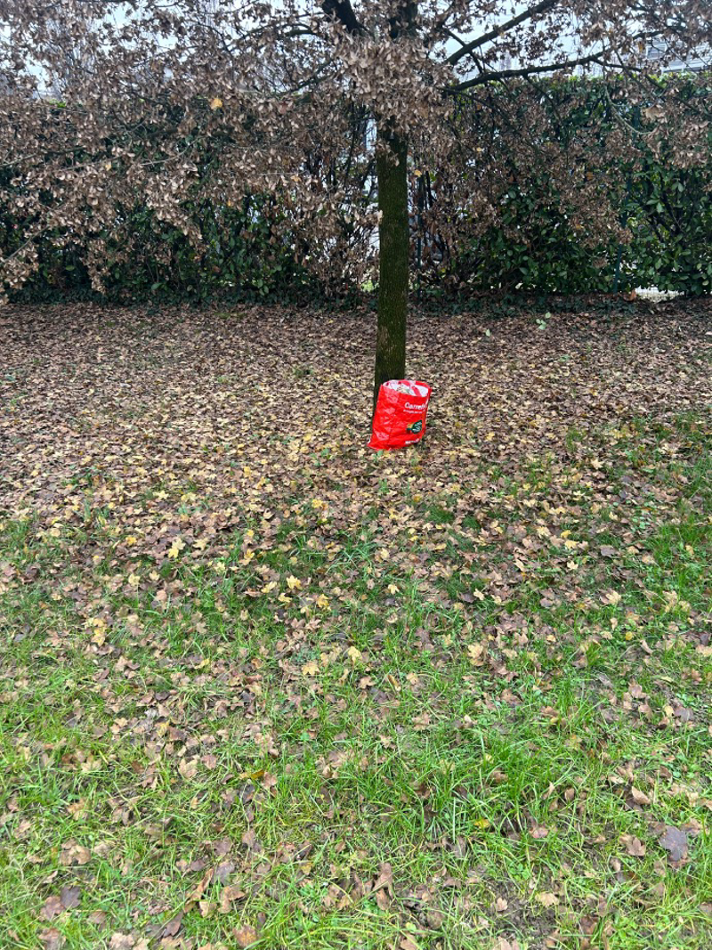 Sacchetti di spazzatura abbandonati lungo il pezzo di asfalto che collega via IV Novembre con via Desti, di fianco al parco Baden Powell (quello smembrato per far posto all'asilo nido in costruzione, per intenderci). I sacchetti sono comparsi stamane e sono lì a far bella mostra di sé per ciclisti e pedoni che attraversano il parco.
