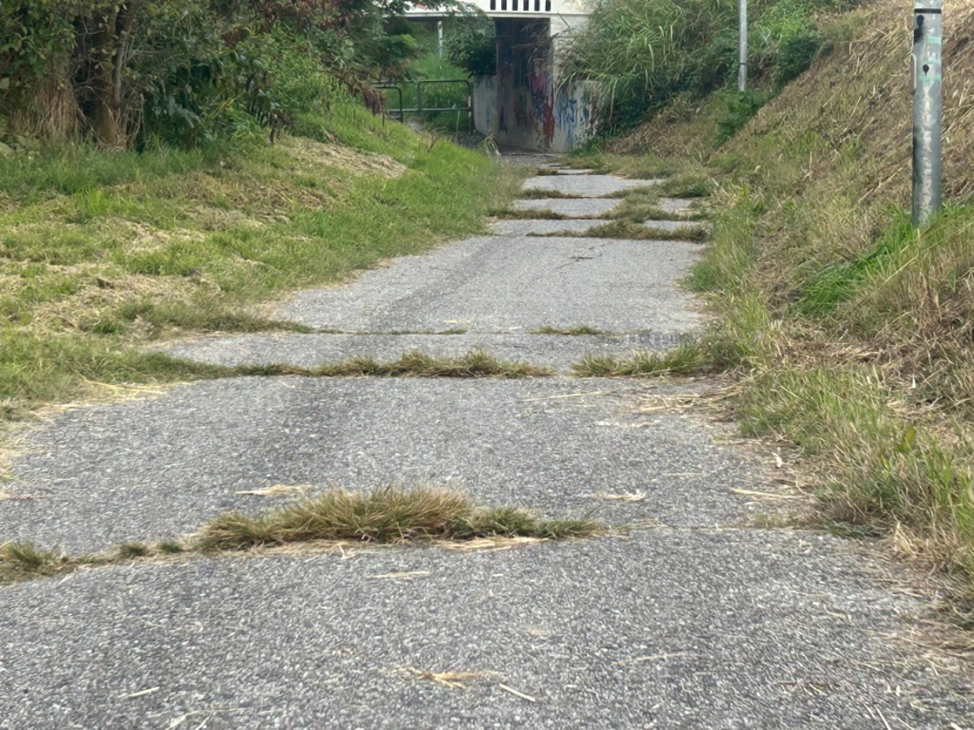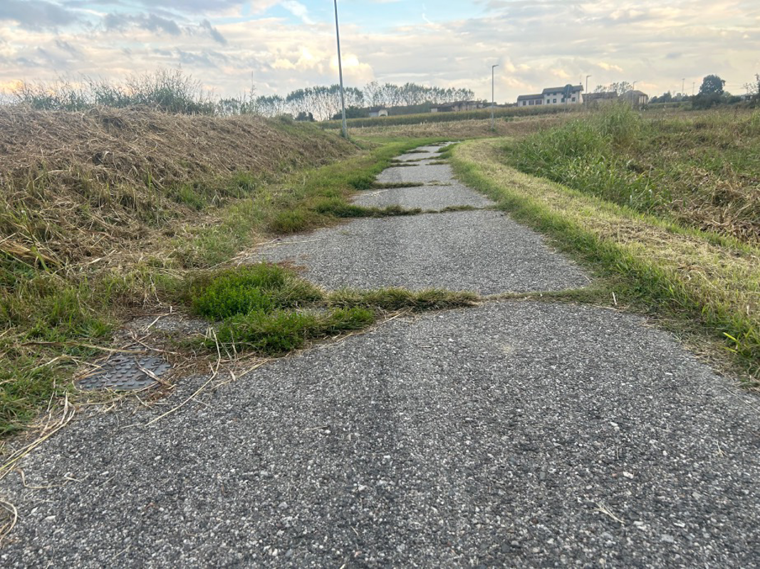 Una ciclabile che sta diventando un campo. Per tutta la sua lunghezza, da Castelnuovo a S. Bernardino, ci sono larghe crepe nelle quali è cresciuta, rigogliosa, l'erba. E se va avanti così la ciclabile se la mangia la vegetazione. C'è solo da sperare che il generale inverno intervenga col solito rigore (!) e faccia piazza pulita dell'erba. Anche se poi a primavera...