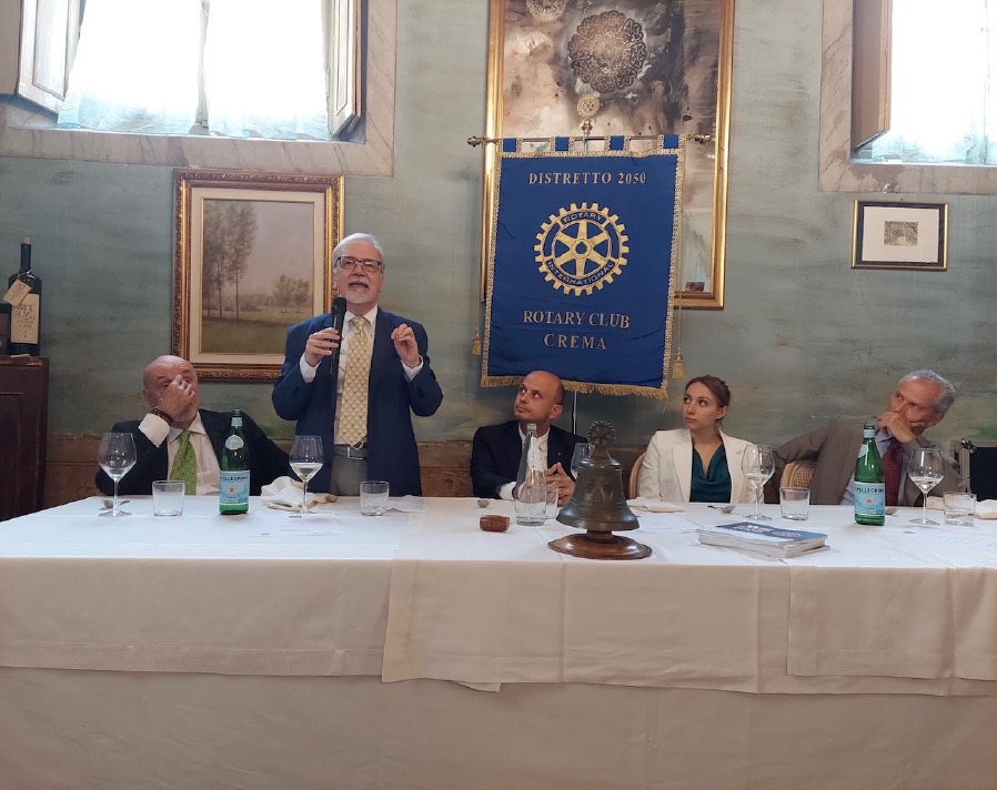 Nel corso della sua ultima conviviale - prima del passaggio delle consegne - il Rotary Club Crema ha ospitato come gradito, illustre relatore Alvise Borghi, volto noto della TV ma anche - pochi lo sanno - socio fondatore e primo Presidente del Rotaract di Crema.