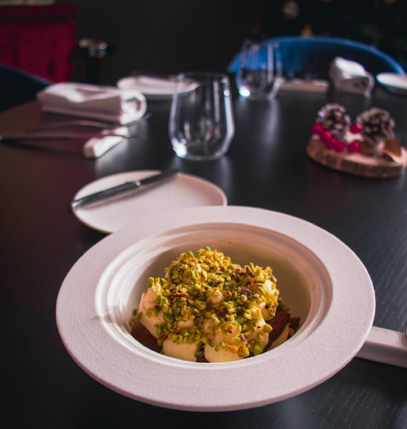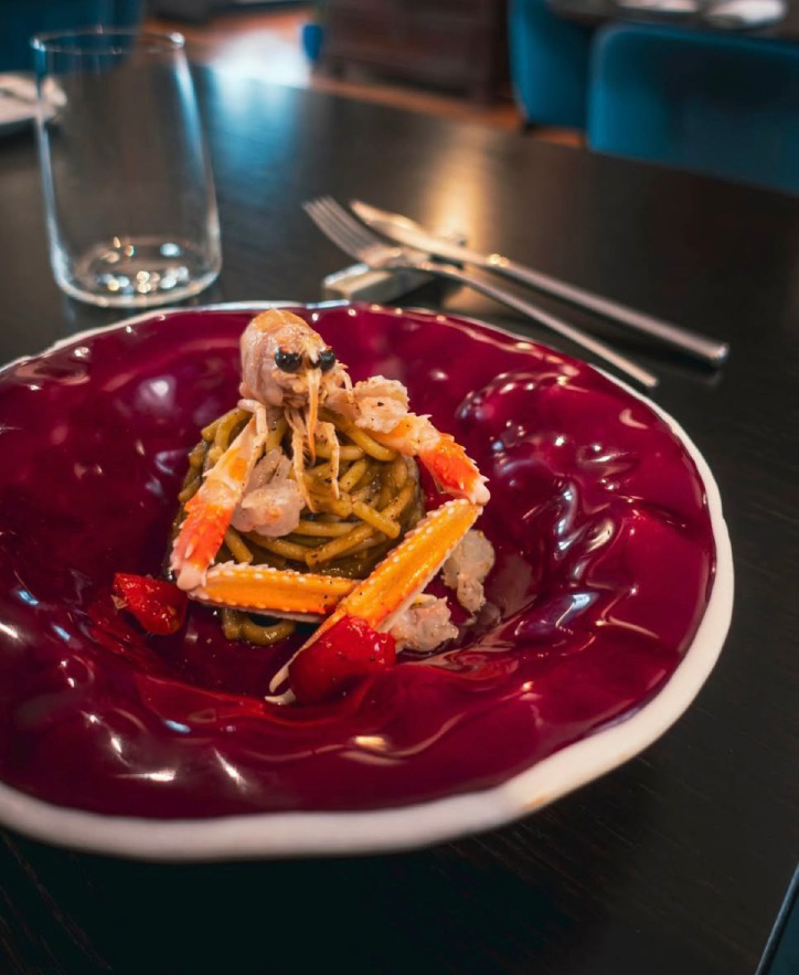 I piatti, geometricamente perfetti, rispecchiano una cucina intelligente, riflessiva ed equilibrata.