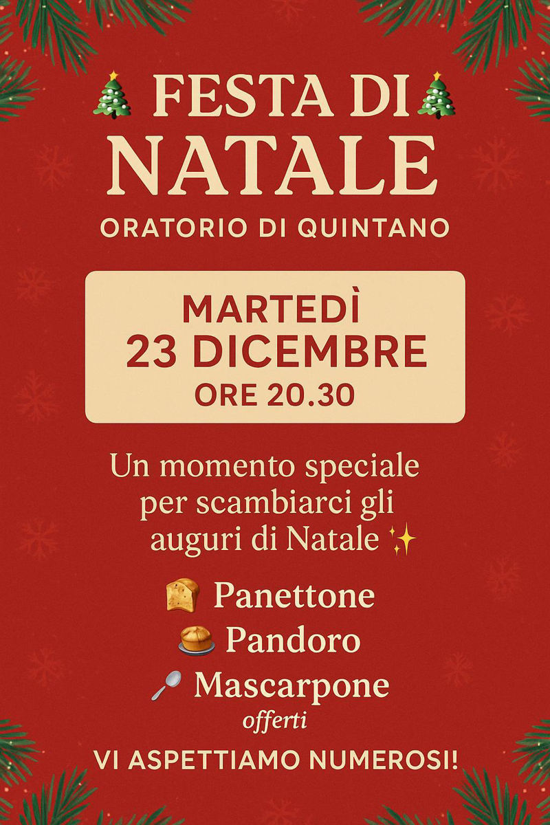 Info e prenotazioni: all’Oratorio di Quintano e all’Oratorio di Pieranica negli orari d’apertura entro domenica 7 dicembre tel. 3394165585