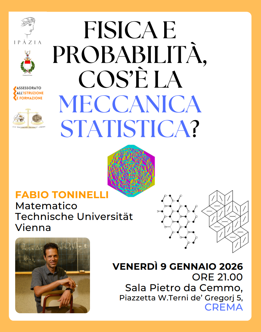 Conferenza con il matematico Fabio Toninelli che illustra il rapporto tra fisica e probabilità e spiega che cos’è la meccanica statistica.