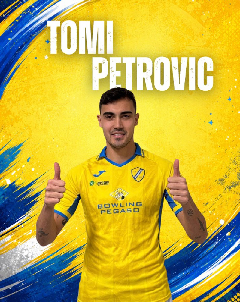 Infine ecco l’attaccante croato Tomi Petrovic, centravanti di piede destro alto 1,93 metri, dotato di grande struttura fisica. E’ nato a Tolosa in Francia l’11/03/1999, ma è di nazionalità croata dove è cresciuto calcisticamente tra le giovanili del Sesvete e della prestigiosa Dinamo Zagabria. Da giovanissimo ha spiccato il volo verso l’Austria dove ha esordito tra i grandi a soli 16 anni con il Deutschlandsberger SC, proseguendo poi con GAK 1902, Rapid Kapfenberg e SV Kapfenberg con cui ha militato in 2. Liga. Il suo approdo in Italia avviene invece con la Virtus Entella, prima nella formazione Under 19 e poi in Prima Squadra. Seguono le esperienze in Serie C con Rimini, Pro Vercelli, Lucchese, Lecco, Pordenone, Pontedera, SPAL e Trento per infine passare alla Juve Stabia in Serie B. In questi primi mesi ha indossato la maglia del Treviso in serie D. Nel corso della sua carriera Petrovic ha collezionato 17 presenze in Serie B (1 gol), 6 presenze in Coppa Italia (2 reti), 174 gare in Serie C (27 gol), 28 presenze in 2. Liga austriaca (1 rete) e 3 apparizioni al Torneo di Viareggio (1 gol).