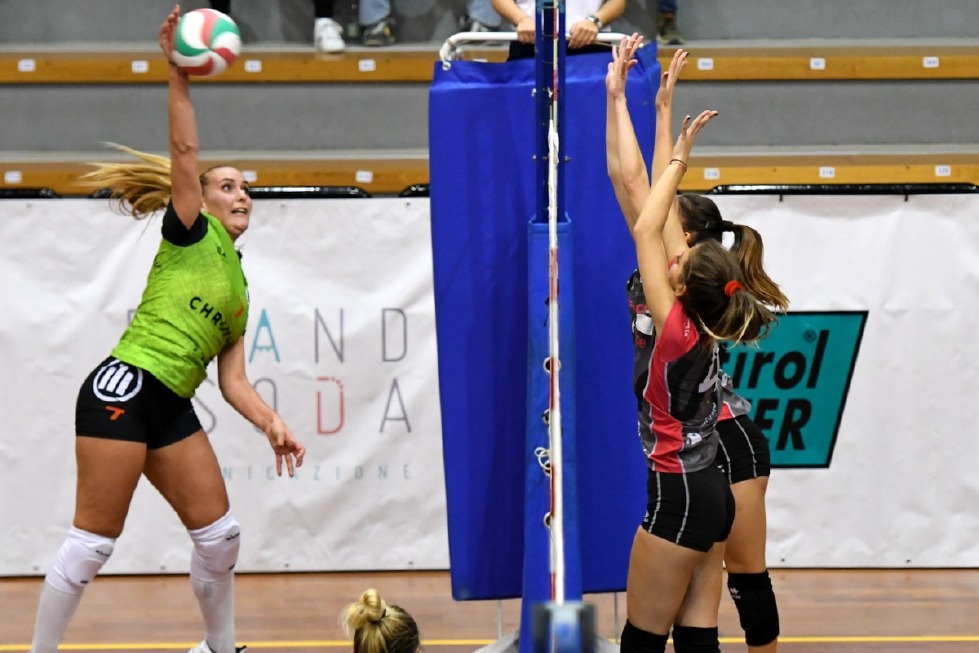 Nella foto di Riccardo Giuliani/Walliance Ata Trento, la schiacciatrice Greta Pinali (Chromavis Abo) in attacco nel match d’andata