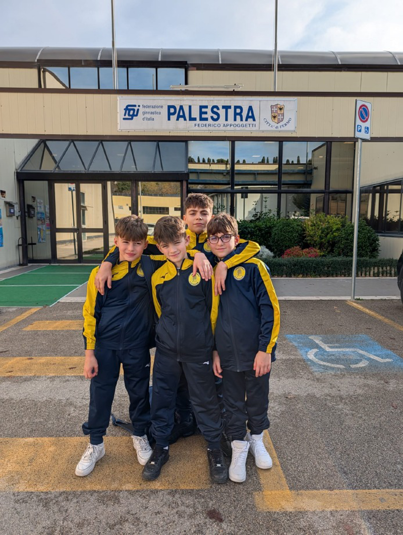 A Fermo, nella finale nazionale allievi Gold 1, la squadra della Liberi e Forti formata da Luca Bianco, Filippo Freri e Carmine Garzia, con Oliver Vazquez Casamada come riserva, sotto la guida dell’allenatrice Sara Cabrini ha offerto eccellenti performances (sorprendente il 9,900 di Freri al volteggio) anche se i punteggi ottenuti non sono bastati per la qualificazione alla finale, data la giovane età dei ginnasti gialloblù.